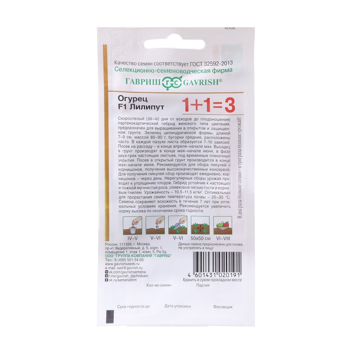 Скороспелый (38-42 дня от всходов до плодоношения) партенокарпический гибрид женского типа цветения, предназначен для выращивания в открытом и защищенном грунте. Зеленец цилиндрической формы длиной 7-9 см, массой 80-90 г, бугорки средние, расположены часто. В каждой пазухе листа образуется 7-10 завязей. Посев на рассаду в конце апреля – начале мая. Высадку в грунт производят в конце мая – начале июня в фазе двух-трех настоящих листьев под временные пленочные укрытия. Посев в открытый грунт производится в конце мая – в начале июня. Рекомендуется для сбора пикулей и корнишонов, для получения высококачественных консервов. Для получения пикулей – сбор производят ежедневно, корнишонов – через день. Нерегулярные сборы урожая приводит к утолщению плодов. Гибрид устойчив к настоящей и ложной мучнистым росам, оливковой пятнистости и корневым гнилям. Урожайность 10,5-11,5 кг/м2 Оптимальная для прорастания семян температура почвы 25-30°C.
