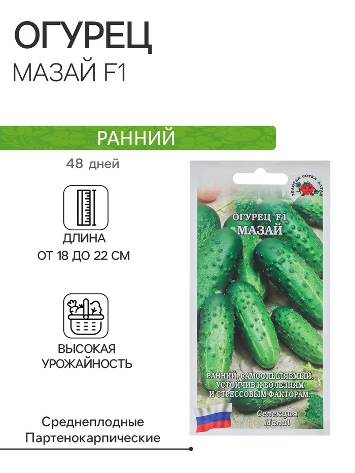 Семена Огурец "Мазай F1" партенокарпический, 0,15 г