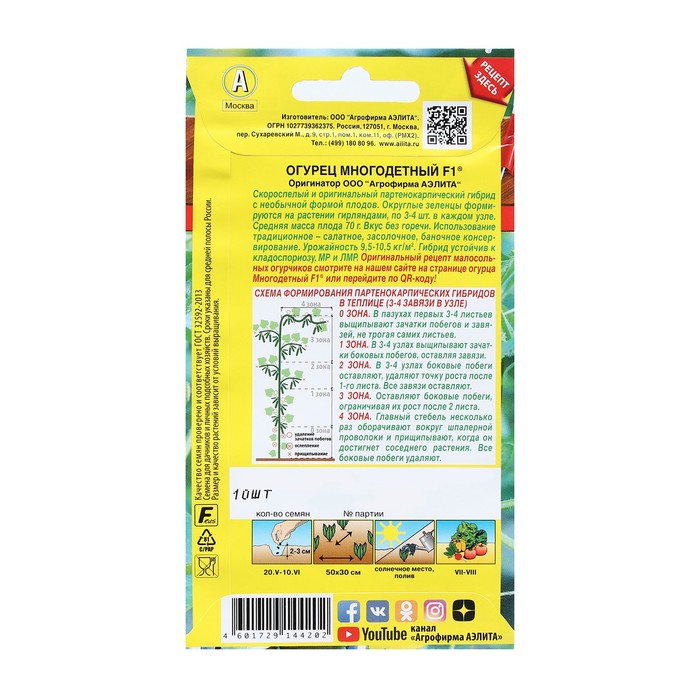 Скороспелый и оригинальный партенокарпический гибрид с необычной формой плодов. Округлые зеленцы формируются на растении гирляндами, по 3-4 шт. в каждом узле. Средняя масса плода 70 г. Вкус без горечи. Использование традиционное – салатное, засолочное, баночное консервирование. Урожайность около 10 кг/м 2 . Гибрид устойчив к кладоспориозу, МР и ЛМР.