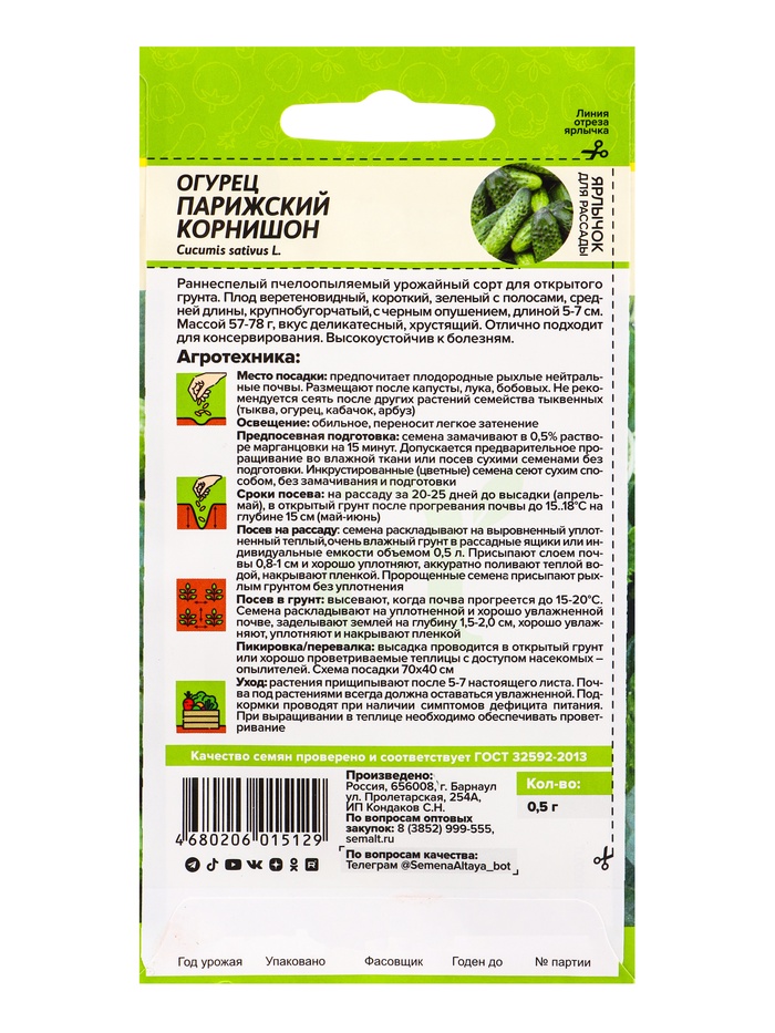 Семена Огурец «Парижский Корнишон», 0.5 г, «Семена Алтая»