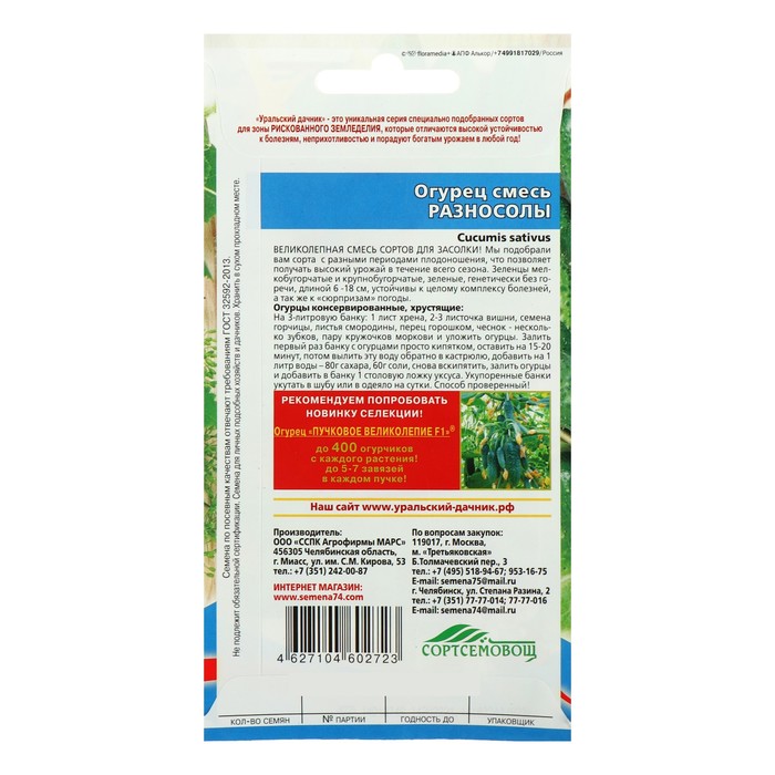 Мы подобрали вам сорта с разными периодами плодоношения, что позволяет получать высокий урожай в течение всего сезона. Зеленцы мелкобугорчатые и крупнобугорчатые, зеленые, генетически без горечи, длиной 6 -18 см, устойчивы к целому комплексу болезней, а так же к «сюрпризам» погоды.