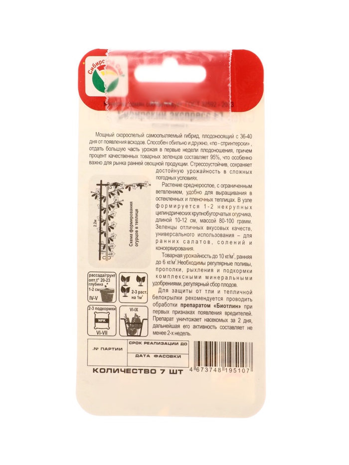 Семена Огурец СИБИРСКИЙ ЭКСПРЕСС F1 7шт