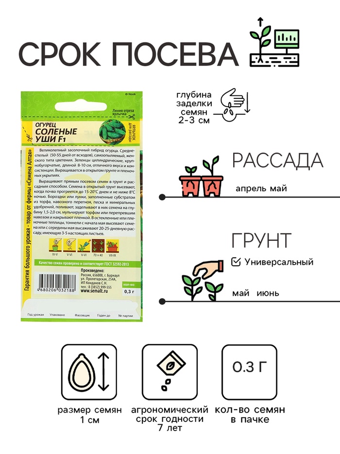 Великолепный засолочный гибрид огурца. Среднеспелый (50-55 дней от всходов), самоопыляемый, женского типа цветения. Зеленцы цилиндрические, крупно-бугорчатые, длиной 8-10 см, отличного вкуса и консистенции. Выращивается в открытом грунте и пленочных укрытиях.