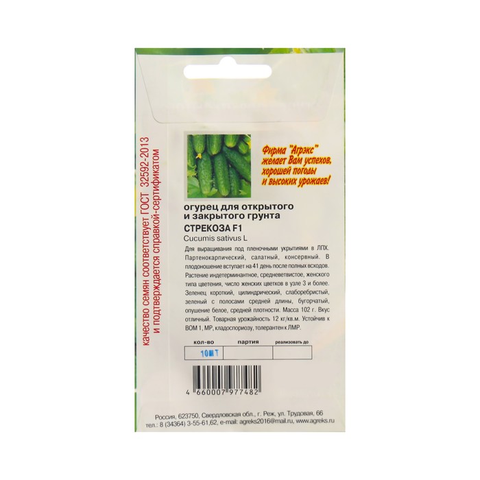 Партенокарпический высокоурожайный скороспелый пучковый корнишонный гибрид для открытого и защищенного грунта. Активный рост плети, хорошее отрастание боковых побегов (II тип саморегулирования ветвления), холодостойкость обусловливают длительный период интенсивного плодообразования. В узлах формируется от 2-3 до 6-8 и более завязей. Зеленцы крупнобугорчатые, белошипые, длиной 8-12 см, плотные, хрустящие; засолочные и вкусовые качества высокие. Гибрид устойчив к мучнистой росе, оливковой пятнистости, вирусу обыкновенной огуречной мозаики, толерантен к ложной мучнистой росе. Выделяется обилием завязей, привлекательным видом зеленцов и их высокими товарными качествами.