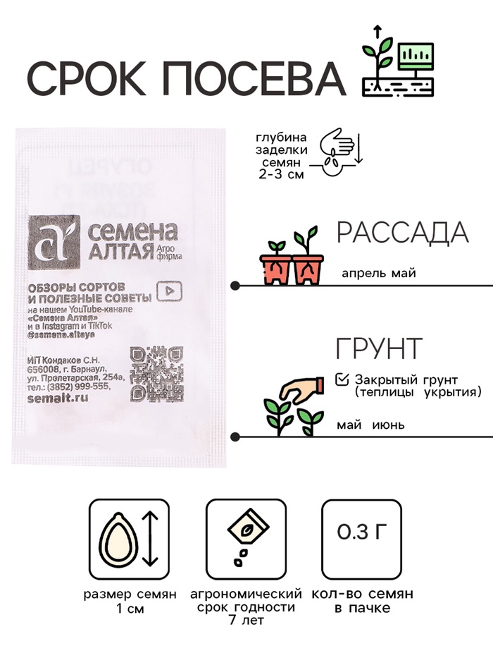 Один из самых популярных раннеспелых гибридов для выращивания в защищенном грунте. Зеленец цилиндрический, слабо-бугорчатый, длиной 14-22 см, массой 160-290 г. Урожайность 17-30 кг/кв.м. Обладает частичной партенокарпией (способен завязывать плоды без опыления). Плоды пригодны для засолки, не желтеют, долго сохраняют товарный вид. Выращивают прямым посевом семян в грунт и рассадным способом. Семена в открытый грунт высевают, когда почва прогреется до 15-20°С днем и не ниже 8°С ночью. Бороздки или лунки, заполненные субстратом из торфа, навозного перегноя, песка и минеральных удобрений, поливают, заделывают в них семена на глубину 1,5-2,0 см, мульчируют торфом или перепревшим навозом и накрывают пленкой. В остекленные или пленочные теплицы, тоннели с начала мая высевают семена или с середины мая высаживают 20-25-дневную рассаду, имеющую 3-5 настоящих листьев. Схема посадки 70х40. Не требует формировки.
