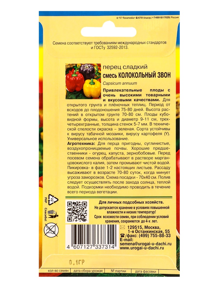 Семена Перец СМЕСЬ КОЛОКОЛЬНЫЙ ЗВОН 0,1 г.