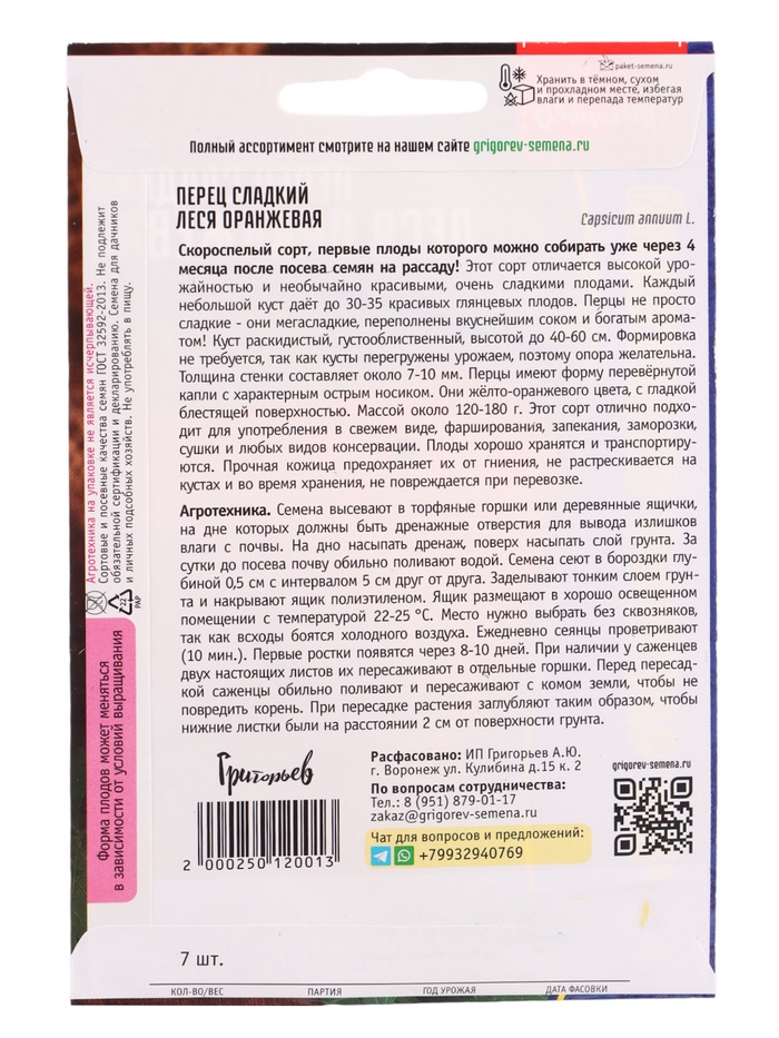 Семена Перец сладкий Леся Оранжевая 7шт. 12.29 г.