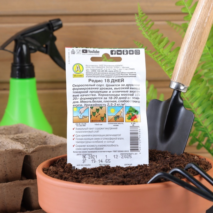 Редис «18 дней» — это скороспелый сорт, созревающий через 18–25 дней после всходов. Розовато-красный корнеплод удлинённой цилиндрической формы имеет сочный неострый вкус и устойчив к цветушности.