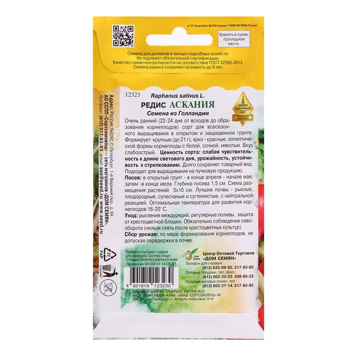 Очень ранний (22-24 дня от всходов до образования корнеплодов) сорт для всесезонного выращивания в открытом и защищенном грунте. Формирует крупные (до 21 г), ярко - красные, эллиптической формы корнеплоды с белой, сочной, мякотью. Вкус слабоострый. Ценность сорта: слабая чувствительность к длине светового дня, урожайность, устойчивость к стрелкованию. Долго сохраняет товарный вид. Подходит для выращивания на пучковую продукцию.Посев: в открытый грунт - в конце апреля - начале мая, затем -в конце июля. Глубина посева 1,5 см. Схема размещения растений 5х10 см. Лучшие почвы - рыхлые, плодородные, супесчаные и суглинистые, с нейтральной реакцией. Оптимальная температура для развития корнеплодов 16-20° С.Уход: рыхление междурядий, регулярные поливы, защита от крестоцветной блошки. Обязательно соблюдение севооборота (нельзя сеять после крестоцветных культур).Сбор урожая: по мере формирования корнеплодов, не допуская передержки в почве.