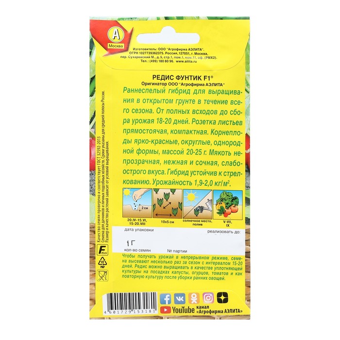 Раннеспелый гибрид для выращивания в открытом грунте в течение все го сезона. От полных всходов до сбора урожая 18-20 дней. Розетка листьев прямостоячая, компактная. Корнеплоды ярко-красные, округлые, однородной формы, массой 20-25 г.Мякоть не прозрачная, нежная и сочная, слабо острого вкуса. Гибрид устойчив к стрелкованию. Урожайность 1,9-2,0 кг/ м2.Чтобы получать урожай в непрерывном режиме, семена высевают несколько раз за сезон с интервалом 15-20 дней.Редис можно выращивать в качестве уплотняющей культуры на посадках капусты, огурцов, томатов и как повторную культуру после уборки ранних овощей.