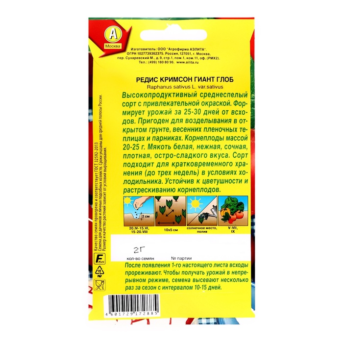 Семена редиса «Кримсон гиант» обеспечат ваш стол свежим и вкусным овощем, который подчеркнёт вкус любого блюда. Попробуйте этот сорт один раз, и он станет постоянным обитателем вашего огорода.