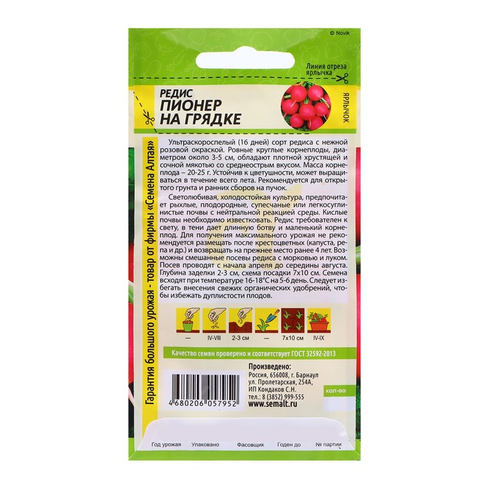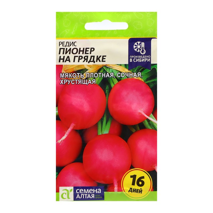 Ультраскороспелый (16 дней) сорт редиса с нежной розовой окраской. Ровные круглые корнеплоды, диаметром около 3-5 см, обладают плотной хрустящей и сочной мякотью со среднеострым вкусом. Масса корнеплода —20-25 г. Устойчив к цветушности, может выращиваться в течение всего лета. Рекомендуется для открытого грунта и ранних сборов на пучок.