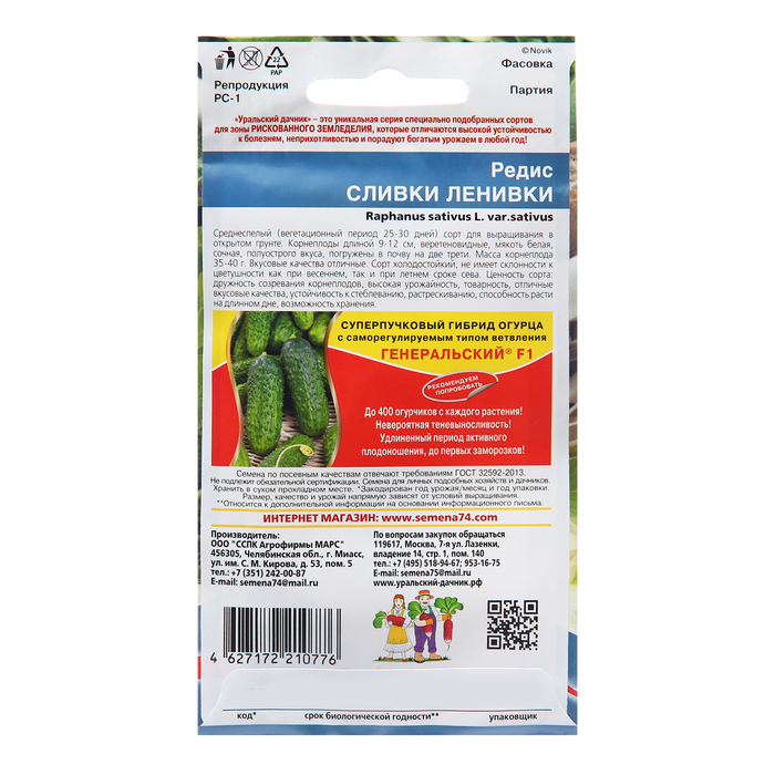 Семена Редис "Сливки ленивки", 2 г