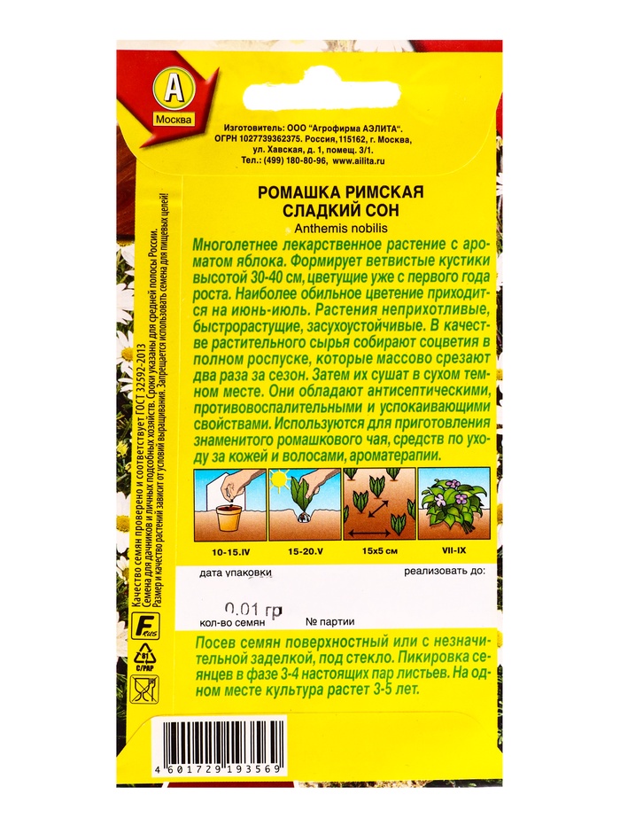 Семена Ромашка римская Сладкий сон Лечебный огород, Ц/П,0,01 г