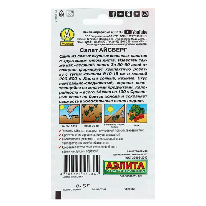 Один из самых вкусных салатов с хрустящим типом листа. Известен также как «ледяной» салат, или «криспхед». За 50-60 дней от всходов формирует компактную розетку с тугим кочаном Ø 10 - 15 см и массой 200-500 г. Листья в кочане широкие, сочные, нежные; богаты витаминами, минералами и клетчаткой. Вкус нейтрально-сладковатый, хорошо сочетающийся со многими продуктами. Калорийность – всего 14 ккал на 100 г.
