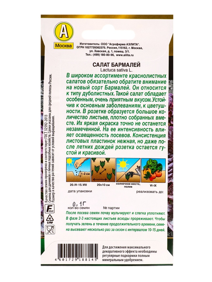 Семена Салат Бармалей Золотая серия, Ц/П,0,1 г