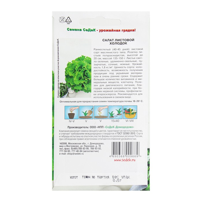 Раннеспелый (40-45 дней) листовой сорт маслянистого типа. Розетка листьев полураскидистая, высотой до 20 см, массой 135-150 г. Листья светло-зеленые, удлиненно-овальные, пузырчатые, сочные, нежные. Урожайность 1,8 кг/м2.