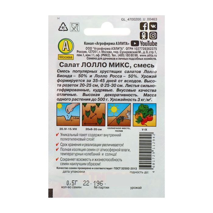 Благодаря внутреннему полиэтиленовому слою пакет не пропускает влагу и увеличивает срок годности семян до 2 лет.