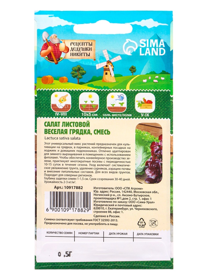 Семена Салат "Веселая грядка" листовой, смесь, 0,5 г