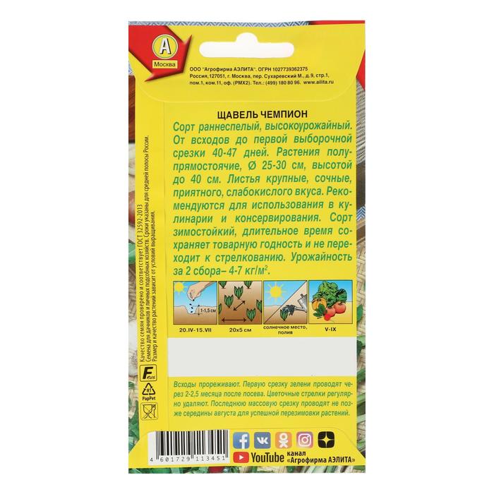 «Чемпион» — раннеспелый высокоурожайный зимостойкий сорт щавеля. Растение формирует крупные сочные листья с приятным слабокислым вкусом. Сорт устойчив к стрелкованию.
