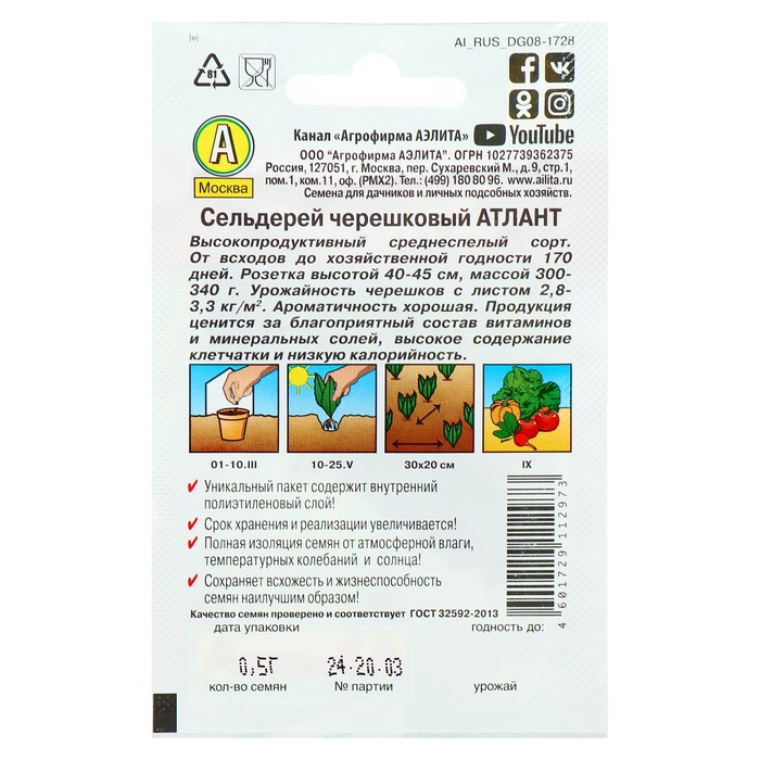 Благодаря внутреннему полиэтиленовому слою пакет не пропускает влагу и увеличивает срок годности семян до 2 лет.