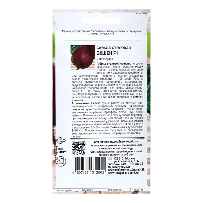 Гибрид столовой свеклы, по своим свойствам очень напоминающий «Пабло», с более сильным листовым аппаратом и мощной корневой системой. Среднеспелый – период от полных всходов до начала технической спелости – 105 дней. Розетка листьев прямостоячая. Корнеплоды выровненные, округлой формы, с равномерной внутренней окраской интенсивно-красного цвета, без колец. Масса корнеплода 110-200 грамм. Отличается великолепным вкусом. Сорт толерантен к цветушности. Рекомендуется для использования в кулинарии и для длительного зимнего хранения.