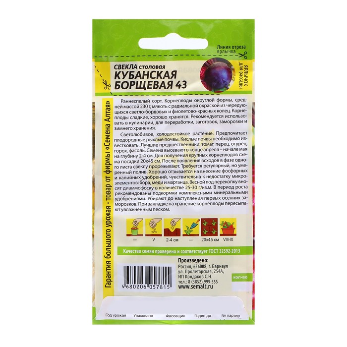 Раннеспелый сорт. Корнеплоды округлой формы, средней массой 230 г, мякоть с радиальной окраской из чередующихся светло-бордовых и фиолетово-красных колец. Корнеплоды сладкие, хорошо хранятся. Рекомендуется использовать в кулинарии, для переработки, заготовок, заморозки и зимнего хранения.