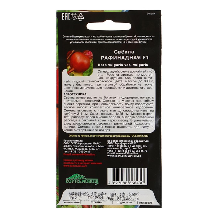 Свёкла «Рафинад» — это очень сладкий высокоурожайный гибрид. Гладкий округлый корнеплод тёмно-красного цвета массой до 300 г обладает отличным вкусом и не теряет цвет при тепловой обработке. Свёкла хорошо растёт на богатых почвах с нейтральной реакцией.