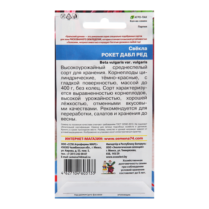 Высокоурожайный среднеспелый сорт для хранения. Корнеплоды цилиндрические, тёмно-красные, с гладкой поверхностью, массой до 400 г, без колец. Сорт характеризуется выравненностью корнеплодов, высокой урожайностью, хорошей лёжкостью, отменными вкусовыми качествами.Рекомендуется для переработки, салатов и хранения до весны.