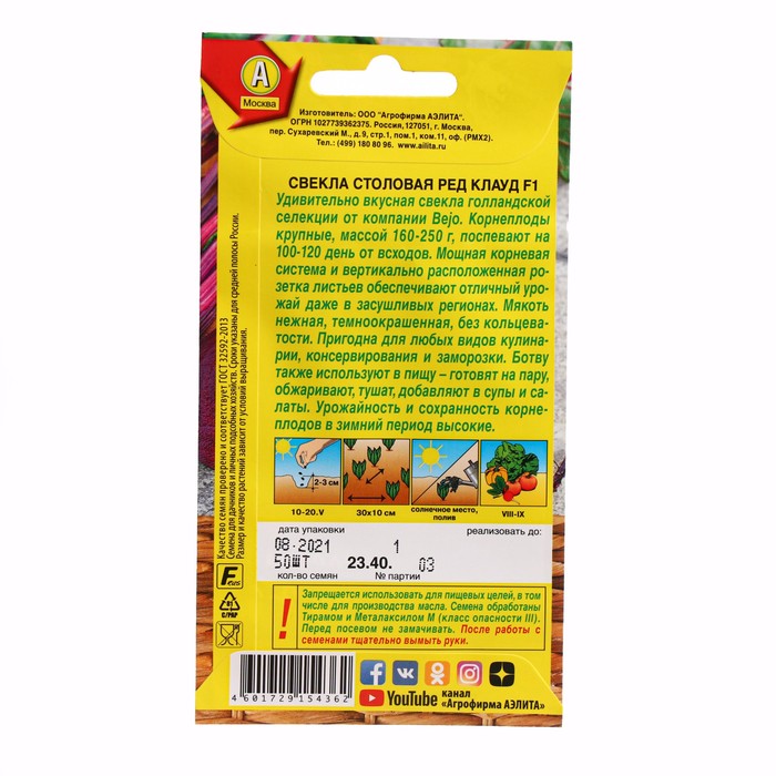 Среднеспелый (115-120 дней от всходов до технической спелости) надежный гибрид, один из лучших для возделывания в зонах с неблагоприятными условиями роста, особенно при дефиците влаги. Розетка листьев крупная, прямостоячая. Корнеплоды округлой формы, с гладкой кожицей, темно-бордового цвета, массой 180-200 г. Мякоть насыщенно бордовая, без разделения на кольцевые зоны. Вкусовые качества отличные. Рекомендуется для использования в свежем виде, переработки и хранения.