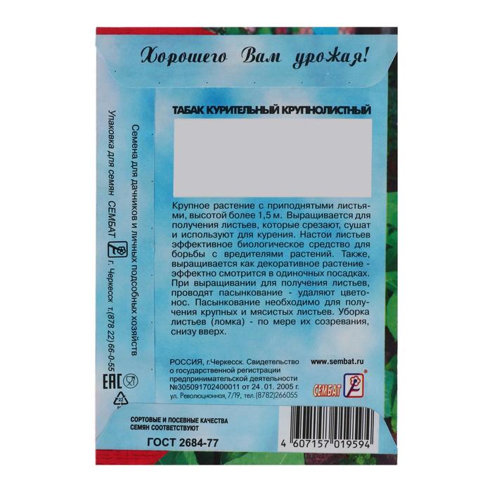 Достаточно неприхотливое для выращивания и возделывания растение, но очень чувствительное к низким температурам. Посев на рассаду март-апрель по поверхности почвы. Всходы появляются через 15-20 дней при температуре 20-25 градусов по Цельсию. Рассаду высаживают в грунт с середины мая в 50-дневном возрасте, расстояние между растениями 50-70 см. Для роста предпочитают солнечные места. Время уборки (с середины июля) - начало изменения цвета листа. Для наилучшей ферментации листьев рекомендуется выдерживать их в течение 2-х лет.