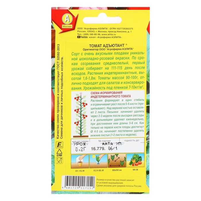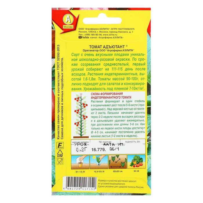 Как сажать. Выращивают рассадным способом с обязательной пикировкой в фазе 1–2 настоящих листьев. Рассаду высаживают в возрасте 60–65 дней, размещая на 1 м² 3–4 шт. Растения подвязывают и формируют в 1–2 стебля. Обязательным является удаление боковых побегов.