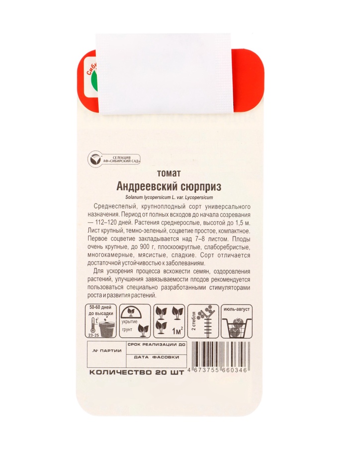 Среднеспелый, крупноплодный сорт универсального назначения. Период от полных всходов до начала созревания- 112-120 дней. Растения среднерослые, высотой до 1,5 м. Лист крупный, темно-зеленый, соцветие простое, компактное. Первое соцветие закладывается над 7-8 листом. Плоды очень крупные, до 900 г, плоскоокруглые, слаборебристые, многокамерные, мясистые, сладкие. Достаточно устойчив к заболеваниям. Для открытого грунта и пленочных укрытий. Выращивается рассадным способом. На 1 кв. м размещают 2 растения. Требует подвязки и своевременного пасынкования.