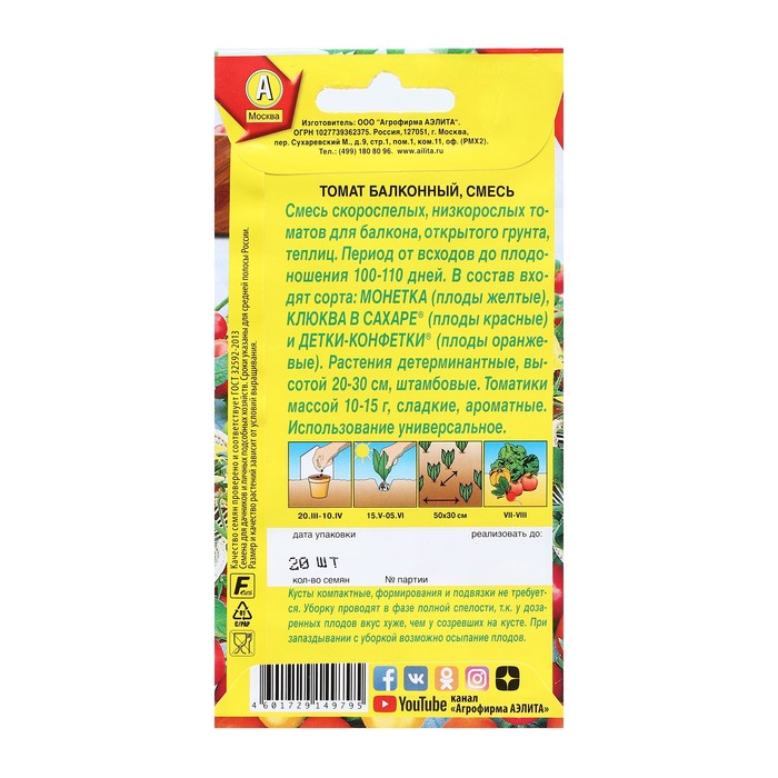 Выращивание вкусных томатов в домашних условиях — занятие очень увлекательное. Растения занимают мало места, отлично плодоносят, неприхотливы в уходе, хорошо приживаются в цветочных горшках. Балконное чудо — раннеспелый (90 дней от всходов до плодоношения), низкорослый (30-40 см), компактный сорт. Он идеально подойдет для выращивания на окне, а также для озеленения балконов и лоджий. Растение не требует подвязки и пасынкования. Плоды округлой формы, массой 20-30 г, очень сладкие и сочные, прекрасно подойдут для свежих салатов и консервирования. На рассаду семена высевают в начале-середине апреля. Пикировка — в фазе первого настоящего листа. Высадка в горшки и балконные ящики — в начале мая в возрасте 30-35 дней. Растение не только обильно плодоносит, но еще отличается высокой декоративностью и привлекательным видом. Семена после уборки сохраняют всхожесть в течение 10 лет при оптимальных условиях хранения. Рекомендуется увеличить норму высева по окончании срока годности.
