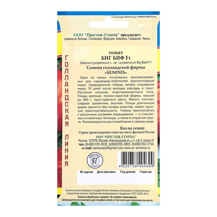 Один из самых популярных, рекомендованных для садоводов-любителей крупноплодный томат. Среднеранний гибрид, начало созревания через 70 дней после высадки рассады в грунт. Растение сильное, индетерминантного типа. Плоды крупные, плоско - округлой формы, массой до 300 г, ярко - красного цвета. Мякоть плотная, сладкая, ароматная, вкусная. Плоды длительное время хранятся без потери качества, имеют высокую транспортабельность. Гибрид приспособлен к различным условиям выращивания - в стеклянных и пленочных теплицах, а также в открытом грунте. Рекомендуются для потребления в свежем виде.