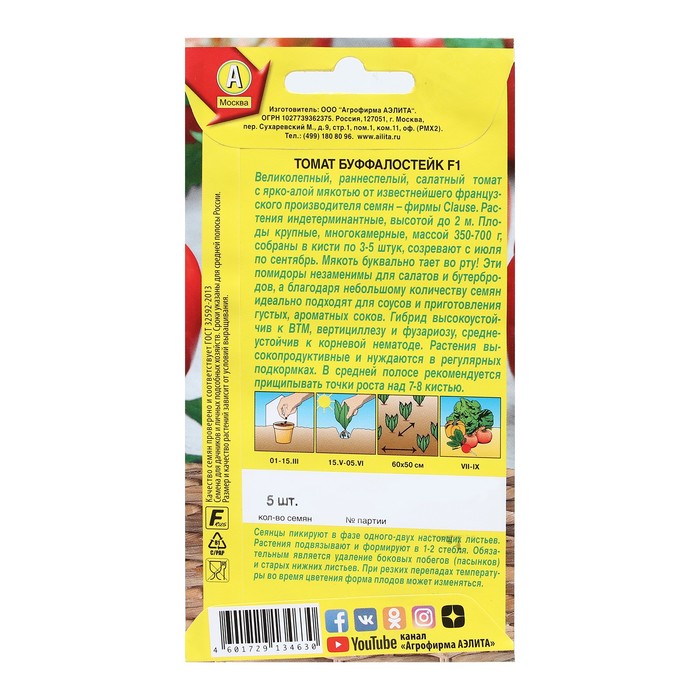 Великолепный раннеспелый салатный томат с ярко-алой мякотью от известнейшего французского производителя семян фирмы Clause. Растения индетерминантные, высотой до 2 м. Плоды крупные, многокамерные, массой 350-700 г, собраны в кисти по 3-5 штук, созревают с июля по сентябрь. Мякоть буквально тает во рту! Эти помидоры незаменимы для салатов и бутербродов, а благодаря небольшому количеству семян идеально подходят для соусов и приготовления густых ароматных соков. Гибрид высокоустойчив к ВТМ, вертициллезу и фузариозу, среднеустойчив к корневой нематоде. Растения высокопродуктивны и нуждаются в регулярных подкормках. В средней полосе рекомендуем прищипывать точки роста над 7-8 кистью.