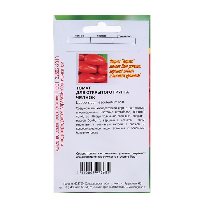 Растение штамбовое, прямостоячее, слабоветвистое, высотой 40–45 см. Плодоношение растянутое. Для открытого грунта. Не требует пасынкования и подвязки. Раннеспелый: созревание плодов наступает на 82–121 день после появления всходов. Плоды красные, мясистые, удлиненно-овальные с носиком (сливовидной формы), гладкие, массой 50–60 г. Рекомендуется для садово-огородных участков, приусадебных и мелких фермерских хозяйств. Для употребления в свежем виде, засолки и цельноплодного консервирования. Семена после уборки сохраняют всхожесть на протяжении 10 лет при оптимальных условиях хранения. Рекомендуется увеличить норму высева по истечении срока годности.