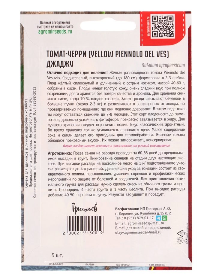 Семена Томат-черри Джаджу (Yellow Piennolo del Vesuvio) 5 шт.