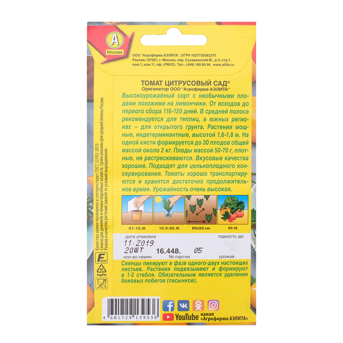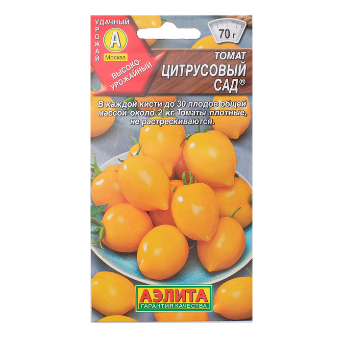 Высокоурожайный сорт с необычными плодами похожими на лимончики. От всходов до первого сбора 116-120 дней. В средней полосе рекомендуется для теплиц, в южных регионах – для открытого грунта. Растения мощные, индетерминантные, высотой 1,6-1,8 м. На одной кисти формируется до 30 плодов общей массой около 2 кг. Плоды массой 50-70 г, плотные, не растрескиваются. Вкусовые качества хорошие. Подходят для цельноплодного консервирования. Томаты хорошо транспортируются и хранятся достаточно продолжительное время. Урожайность очень высокая.