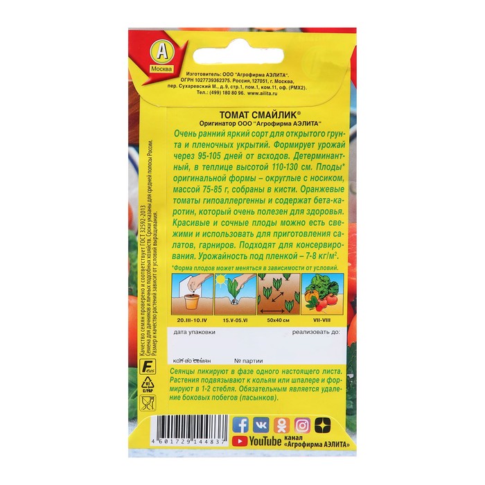 Семена «Томат Смайлик» – это не просто посадочный материал, а способ порадовать себя и своих близких вкусными и сочными плодами. Испытайте этот сорт на своём участке и насладитесь качеством и удобством в посадке и уходе.