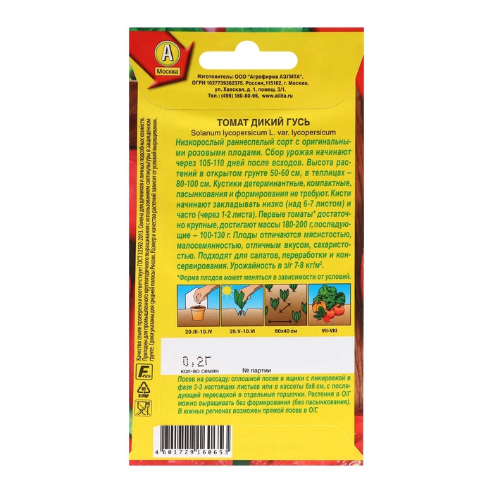 Томатные семена «Дикий гусь» — это ваш путь к богатому раннему урожаю ароматных и сочных плодов. Эти томаты идеально подходят как для открытого грунта, так и для теплиц, что делает их универсальным выбором для любого дачника.