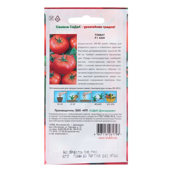 Скороспелый (90-98 дней) сорт для открытого грунта и пленочных укрытий. Растение детерминантное, высотой 50-60 см. Требует умеренного пасынкования. Плоды, плоскоокруглые, слаборебристые, темно-красные, массой 150-200 г, с сочной, мясистой мякотью ярко-красного цвета. Ценность сорта: сочетание скороспелости и крупноплодности, высокой урожайности, имеет повышенное содержание ликопина. Назначение универсальное.