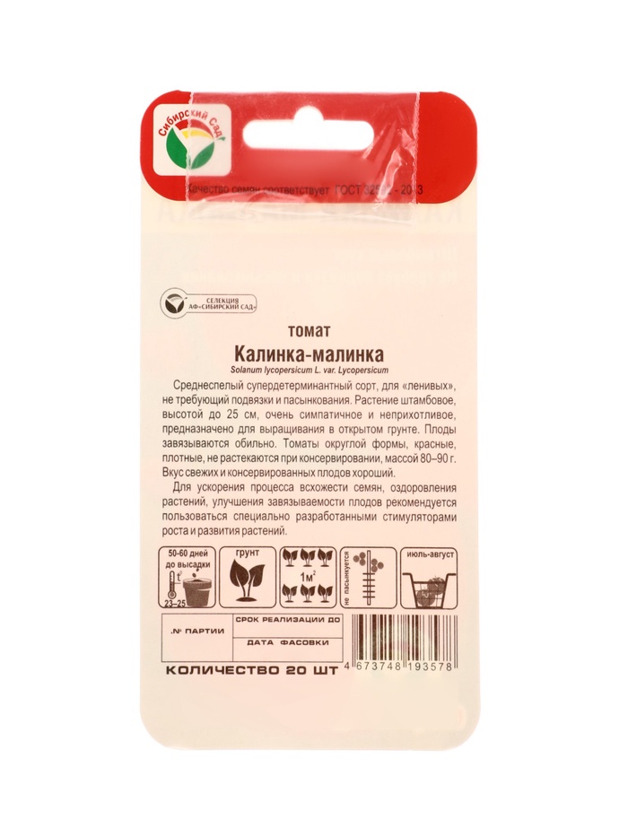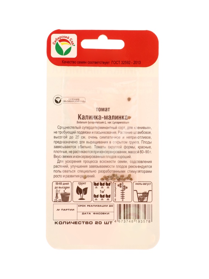 Семена Томат «Калинка малинка», 20 шт., «Сибирский сад»