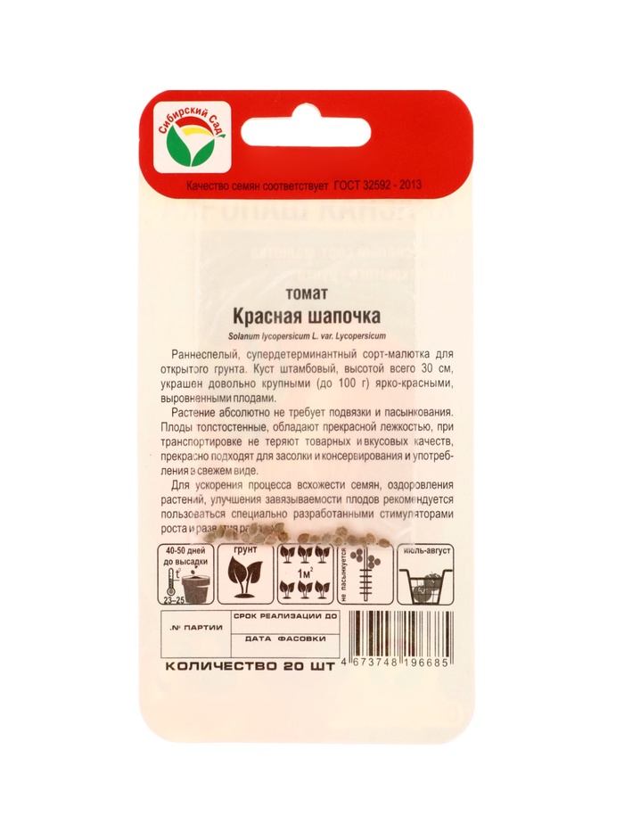 Семена Томат «Красная шапочка», 20 шт., «Сибирский сад»