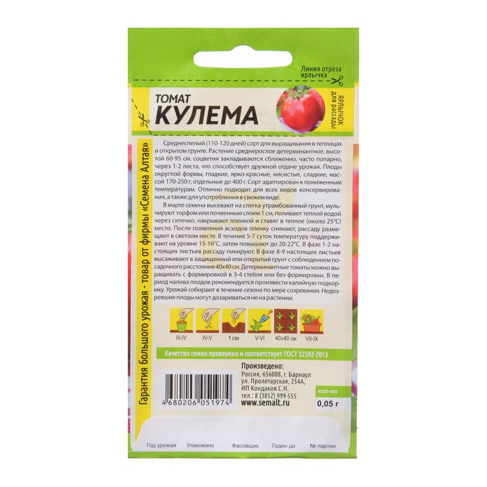 Среднеспелый (110-120 дней) сорт для выращивания в теплицах и открытом грунте. Растение среднерослое детерминантное, высотой 60-95 см, соцветия закладываются сближено, часто попарно, через 1-2 листа, что способствует дружной отдаче урожая. Плоды округлой формы, гладкие, ярко-красные, мясистые, сладкие, массой 170-250 г, отдельные до 400 г. Сорт адаптирован к пониженным температурам. Отлично подходит для всех видов консервирования, а также для употребления в свежем виде.