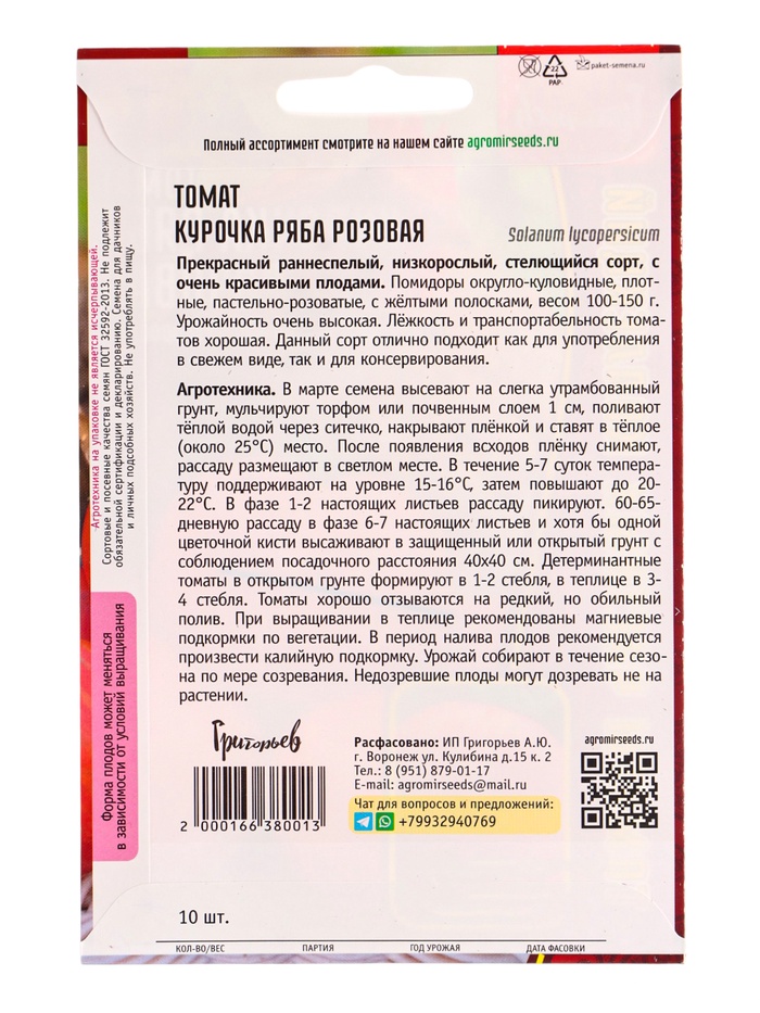 Семена Томат Курочка Ряба Розовая 10 шт. 12.29 г.