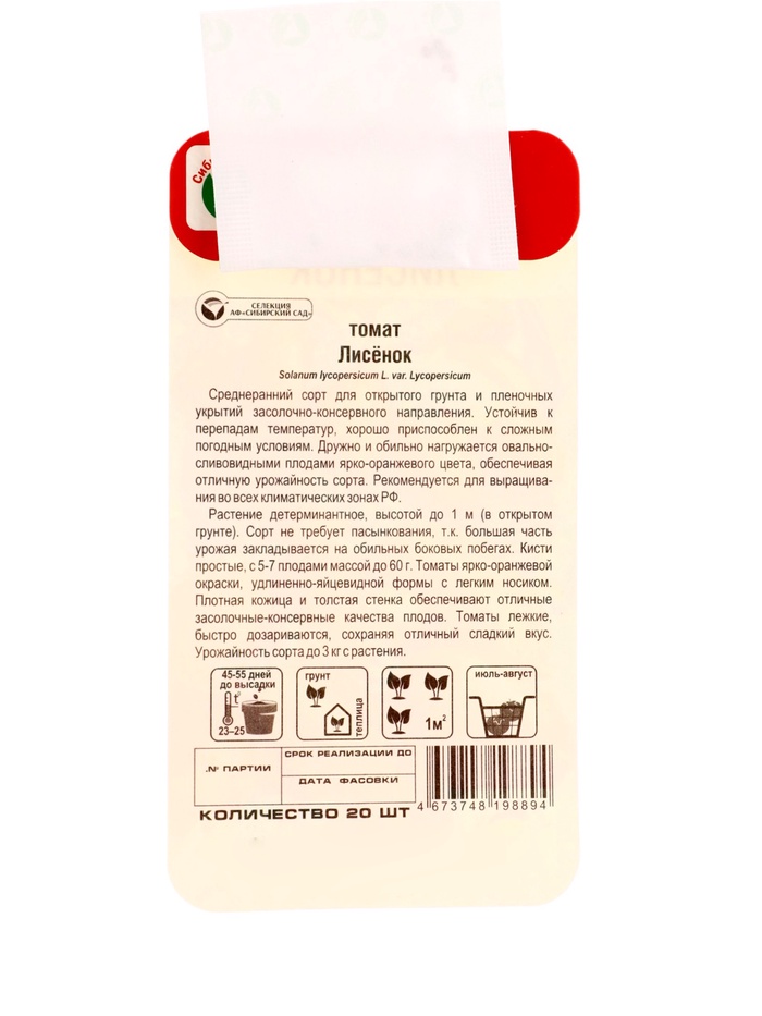 Семена Томат «Лисенок», 20 шт., «Сибирский сад»