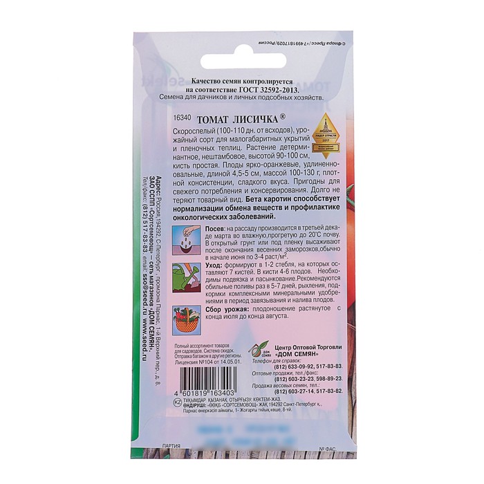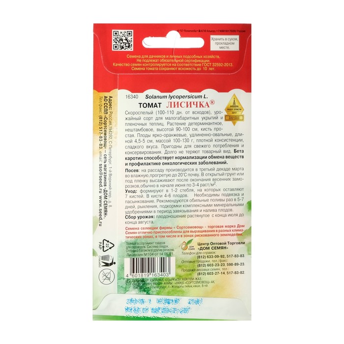 Скороспелый (100-110 дн. от всходов), урожайный сорт для малогабаритных укрытий и пленочных теплиц. Растение детерминантное, нештамбовое, высотой 90-100 см, кисть простая. Плоды ярко-оранжевые, удлиненно-овальные, длиной 4,5-5 см, массой 120-130 г., плотной консистенции, сладкого вкуса. Пригодны для свежего потребления и консервирования. Долго не теряют товарный вид. Бета каротин способствует нормализации обмена веществ и профилактике онкологических заболеваний.