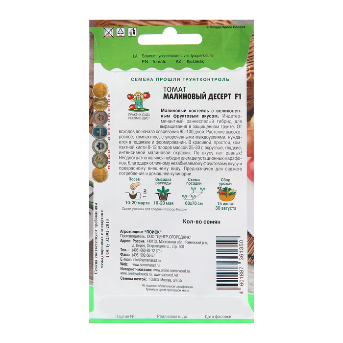 Томат Малиновый десерт - слаще не бывает! Малиновый коктейль с великолепным фруктовым вкусом Индетерминантный раннеспелый гибрид для выращивания в защищенном грунте. От всходов до начала созревания 95-100 дней. Растение высокорослое, компактное, с укороченными междоузлиями, нуждается в подвязке и формировании. В красивой, простой, компактной кисти 8-12 плодов массой 25-30 г, округлые, гладкие, интенсивной малиновой окраски. По вкусу нет равных! Неоднократно являлся победителем дегустационных марафонов, благодаря отличному незабываемому фруктовому вкусу и прекрасному внешнему виду. Предназначен для свежего потребления и домашней кулинарии.