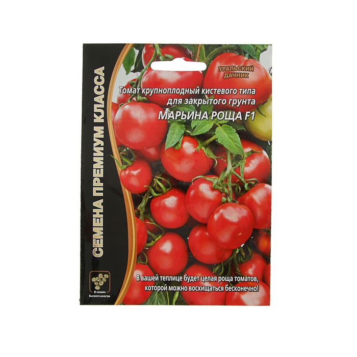 «Марьина роща» — это раннеспелый гибрид со стабильным плодоношением. Массивное растение формирует кисти с 7–9 круглыми красными томатами массой 150–170 г. Сорт устойчив к пониженной освещённости, температурным стрессам и характерным болезням. Урожайность составляет около 20 кг с 1 м². Отлично подходит для заготовок.